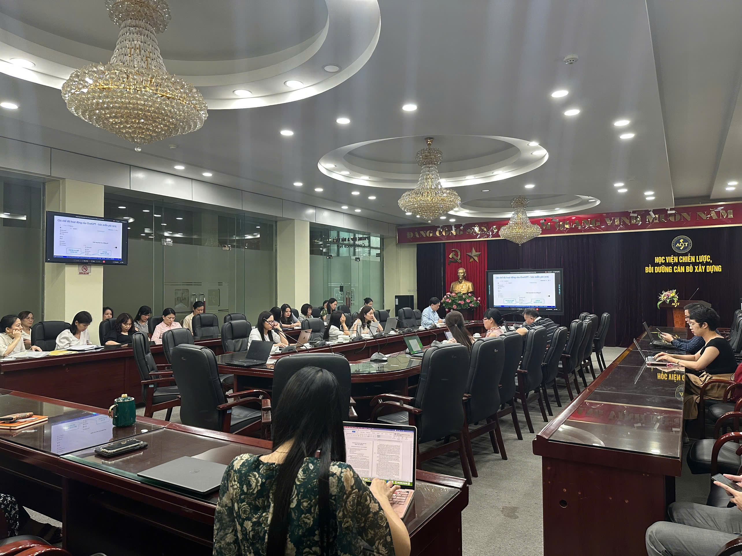 Thực hiện chỉ đạo của Đảng ủy Bộ Xây dựng, Đảng ủy Học viện Chiến lược, bồi dưỡng cán bộ xây dựng kết nối trực tuyến hội nghị toàn quốc, triển khai trực tuyến đến các chi bộ trực thuộc.